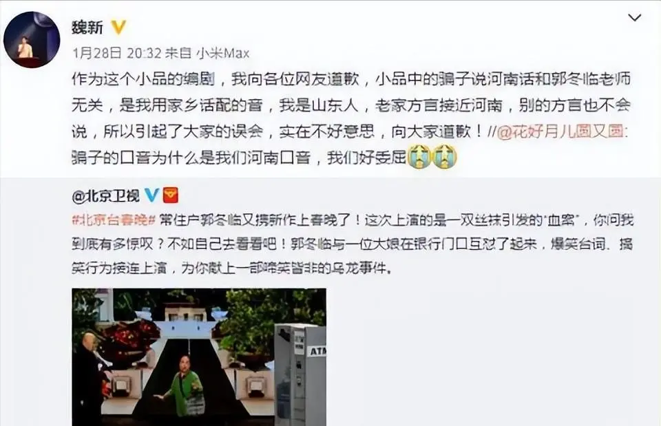 编剧魏新第一时间在微博上出面说清楚了:那个骗子的配音是他本人完成的,因为他只会说自己家乡的山东话,说出来和河南话类似,才引发了误会。